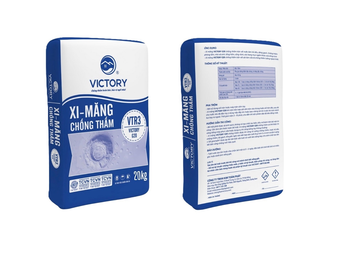 Xi măng chống thấm VICTORY G20 có độ dẻo cao, co ngót thấp có nhiều sợi PP chống nứt hiệu quả Ứng dụng làm hồ dầu đóng gạch chống thấm dự phòng, trộn cát làm vữa tô chống thấm sàn, tường và các hạng mục khác của công trình.
